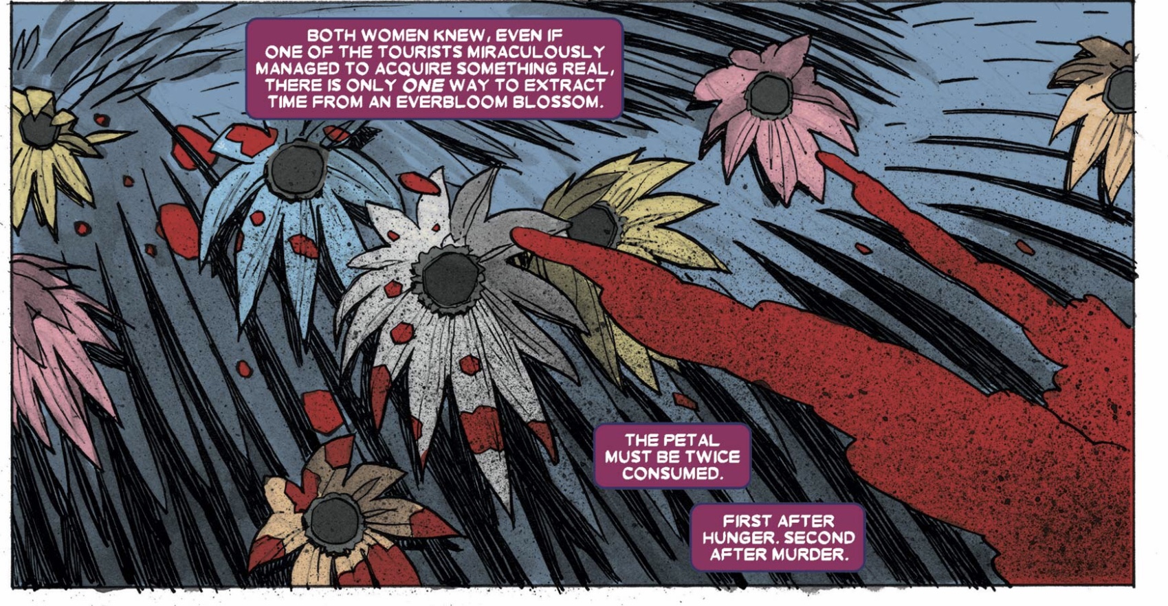security again when we hear mundane details before shocking us. Two, it also has hidden exposition of how the Everbloom works, which will become more important as the scene progresses.