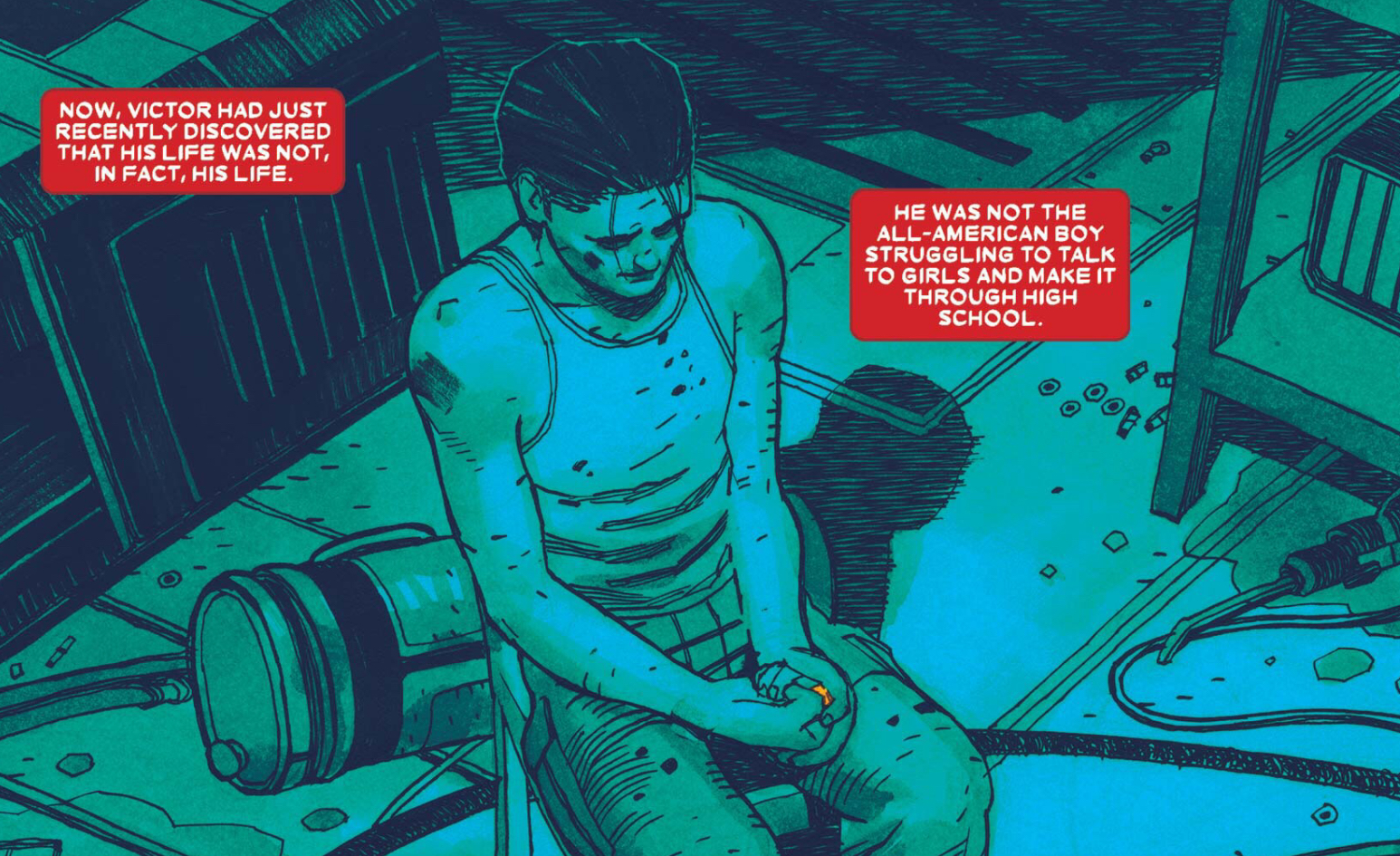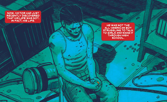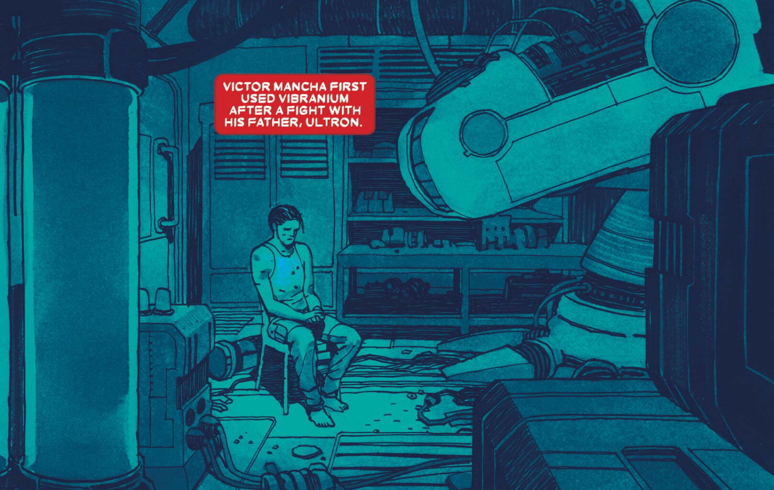 King repeated variations of the phrase: "Victor Mancha's life was not his life" It shows how Victor has a bit of an identity crisis since he learned that everything he thought he knew about his life was a lie. Since then, then he has been a bit aimless: bouncing from his original team to then the Avengers, and then just sitting around alone in an apartment.